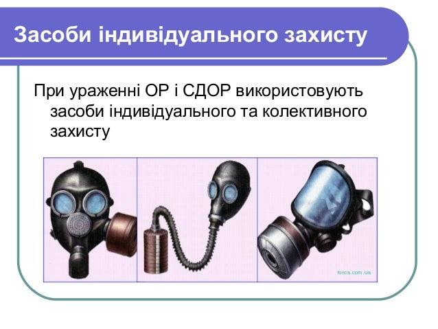 - 13. Засоби індивідуального захисту При ураженні ОР і СДОР використовують засоби індивідуального та колективного захисту